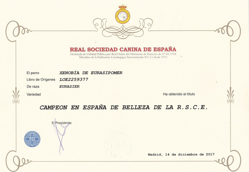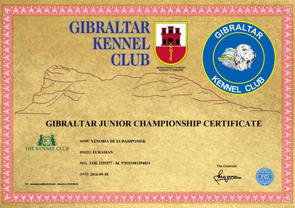Xenobia de Eurasipomer(Xeno), nacida el 12 de Abril de 2015, hija de Benji de Eurasipomer y Duffy Donna Av Nixenspitze.