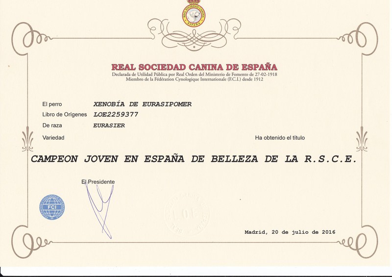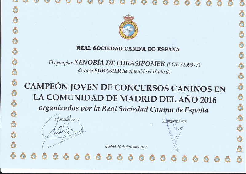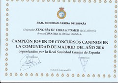 INTERNACIONAL DE PRIMAVERA DE MADRID 2016 : EXC.1º C.C.J. MEJOR JOVEN ( con este último C.C.J. obtiene el título de campeona joven de España )
