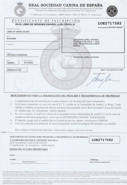 COTTY DE EURASIPOMER . nombrada por la Real Sociedad Canina de España mejor eurasier del 2022.